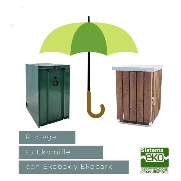 La función de Ekopark y Ekobox es proteger los dispositivos Ekomille del vandalismo y el robo y evitar la captura de animales no objetivo. Ekopark, cuya estructura es principalmente de madera, reduce el impacto ambiental y se integra en el mobiliario urbano. Por eso es especialmente adecuado para ambientes al aire libre. Ekobox, por su parte, al tener una estructura de chapa pintada es apta tanto para ambientes interiores como exteriores.