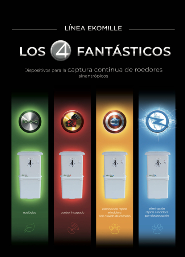 Línea EKOMILLE para la captura continua de roedores, destinado para la desratización en industrias agroalimentarias, granjas, lugares públicos, zonas de interior y exterior. Gracias a sus características permite un control higiénico, seguro y respetuoso con el medio ambiente.